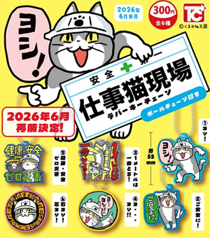 仕事猫の現場デザインがラバーキーホルダーで登場。再販ご予約品として2026年6月に発売予定です。